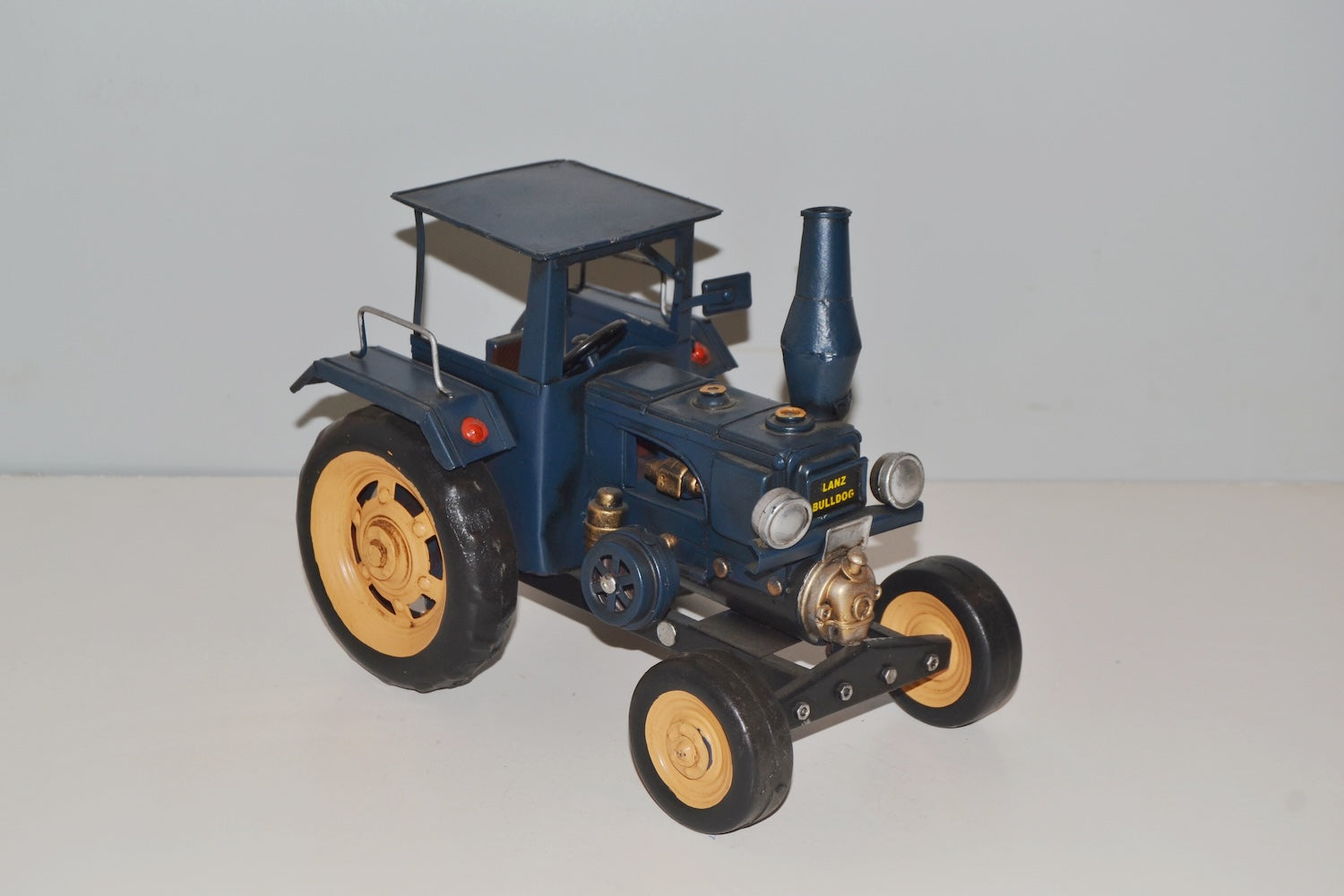 Ein nostalgisches Traktormodell in detailnaher Optik und ein wenig Fantasie. Modellchassis aus stabilem Blech. Räder sind beweglich. Handgefertigt und farblich in optischen Feinheiten auf "alt" getrimmt. Ein sehenswertes Modell aus der Zeit des Beginns der Mechanisierung der Landwirtschaft.